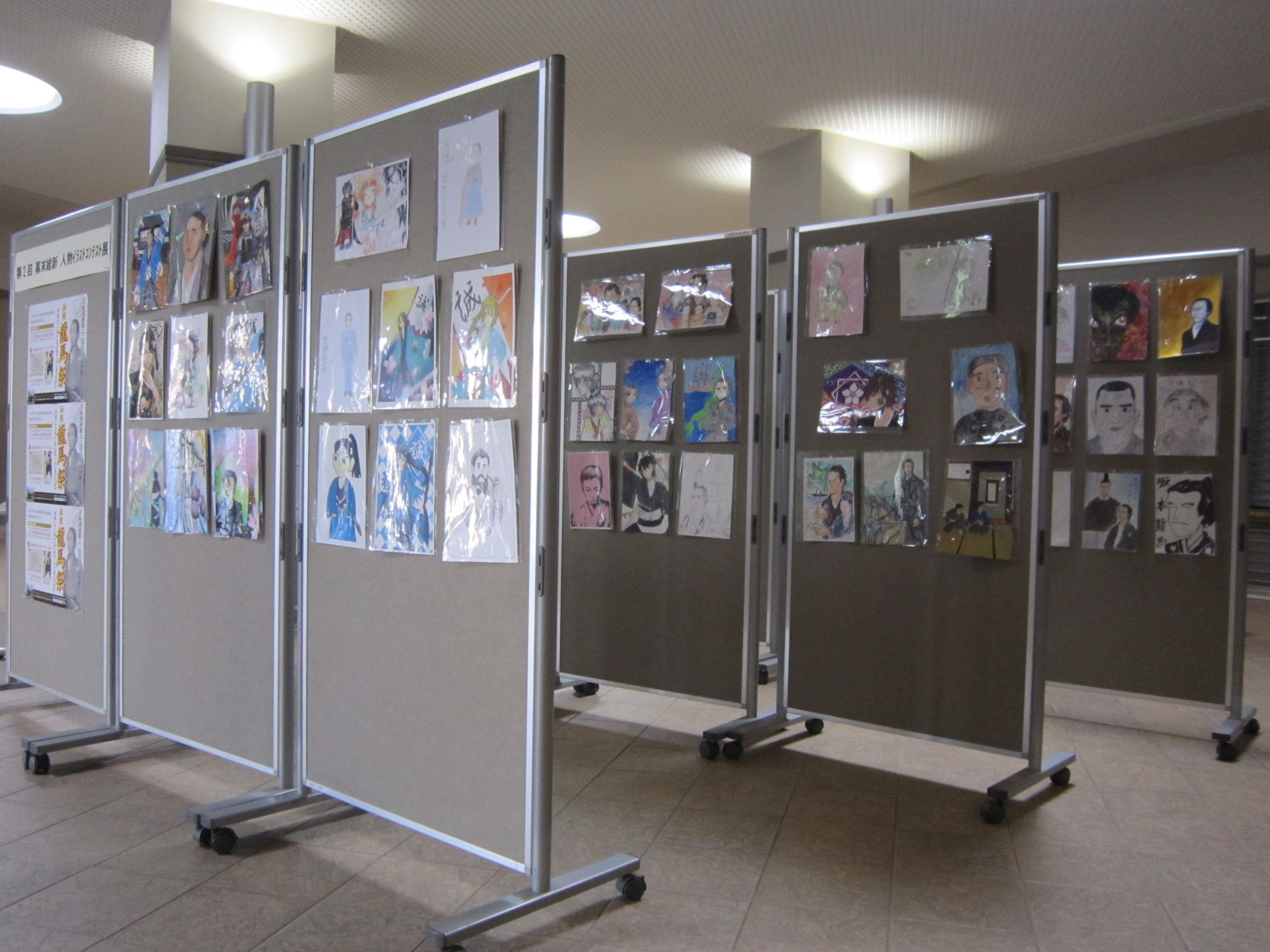 記念館1周年・龍馬像建立記念事業として開催された、「第2回幕末維新人物イラストコンテスト」作品展を好評開催中です。展示は下記2会場で開催されています。