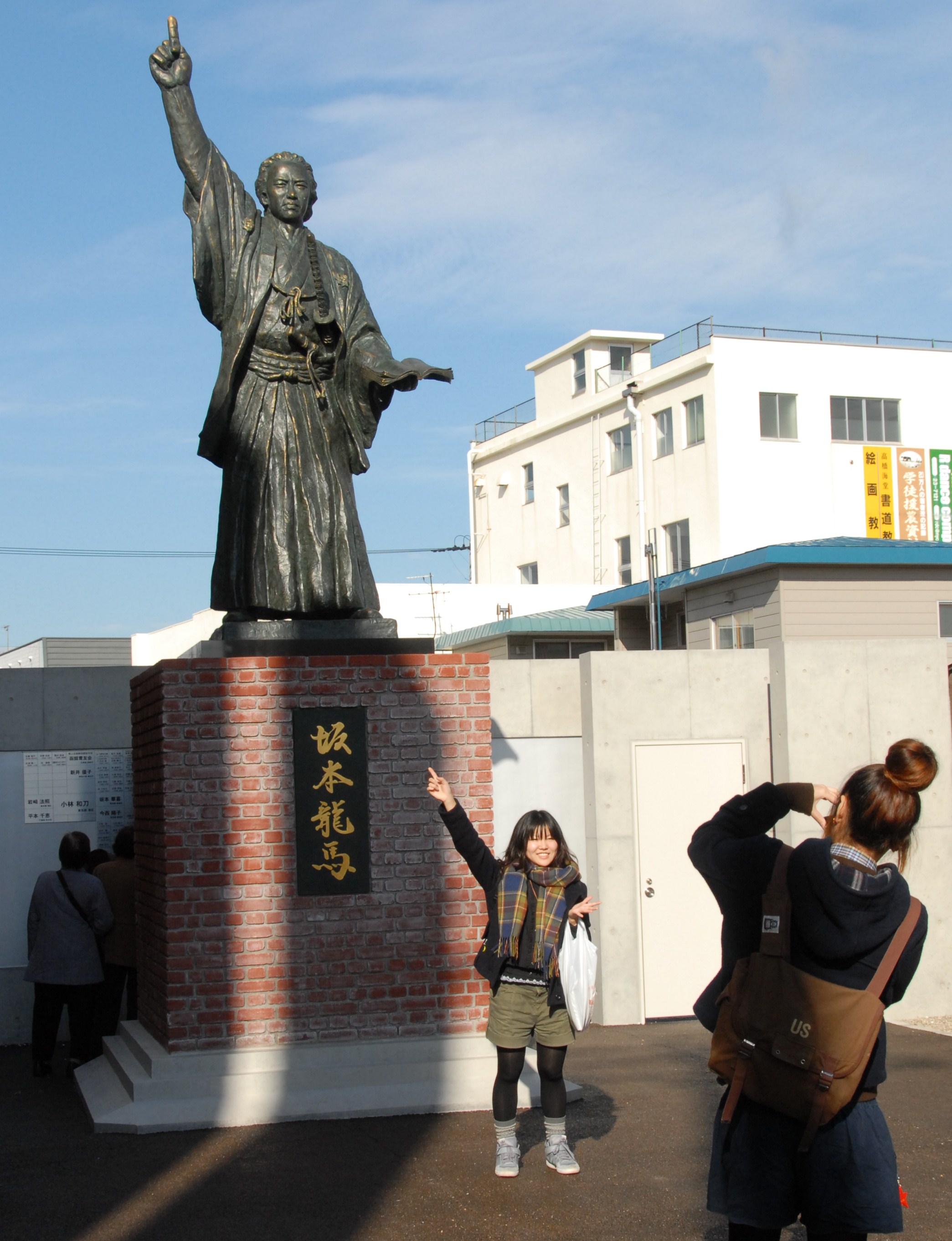 記念館向かいに「蝦夷地の坂本龍馬像」が誕生して以来、毎日朝早くから多くの観光客の方々が訪れて記念撮影をする姿が見られるようになりました。