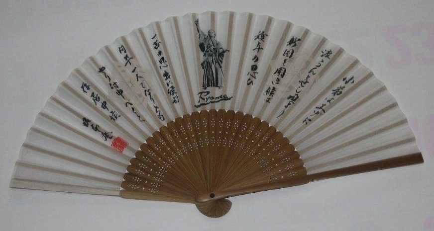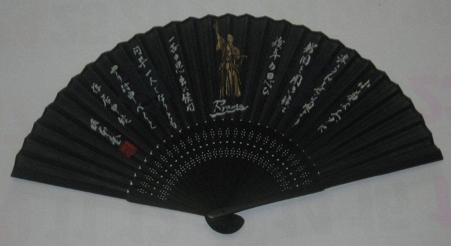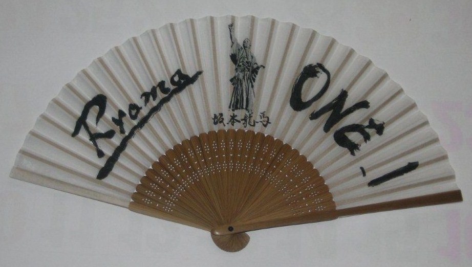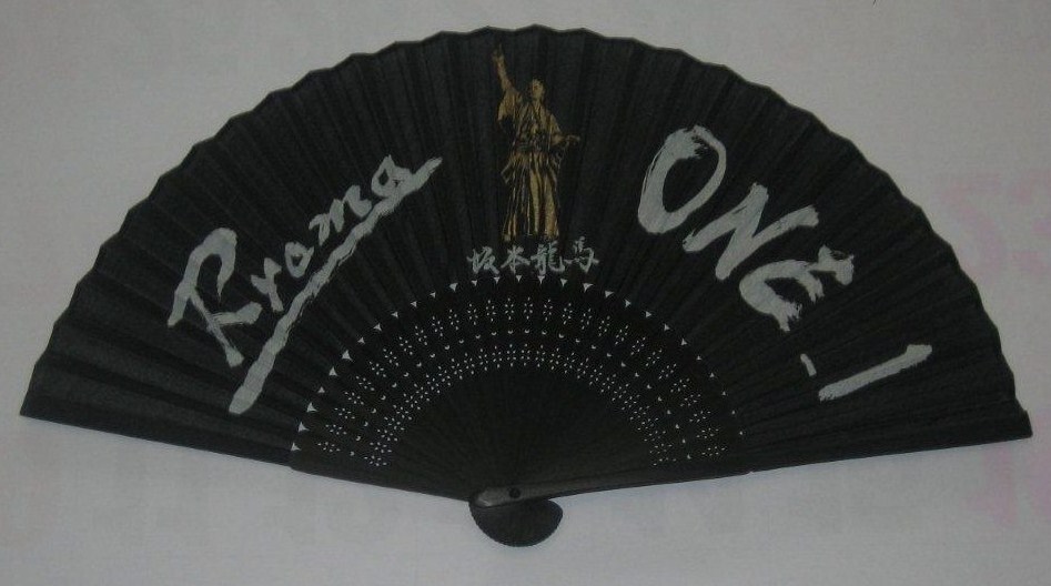 ◎シルク製の「ONE_1」扇子(上)と龍馬像扇子(下)、それぞれホワイトとブラックの2色を準備。価格は900円(税別)。