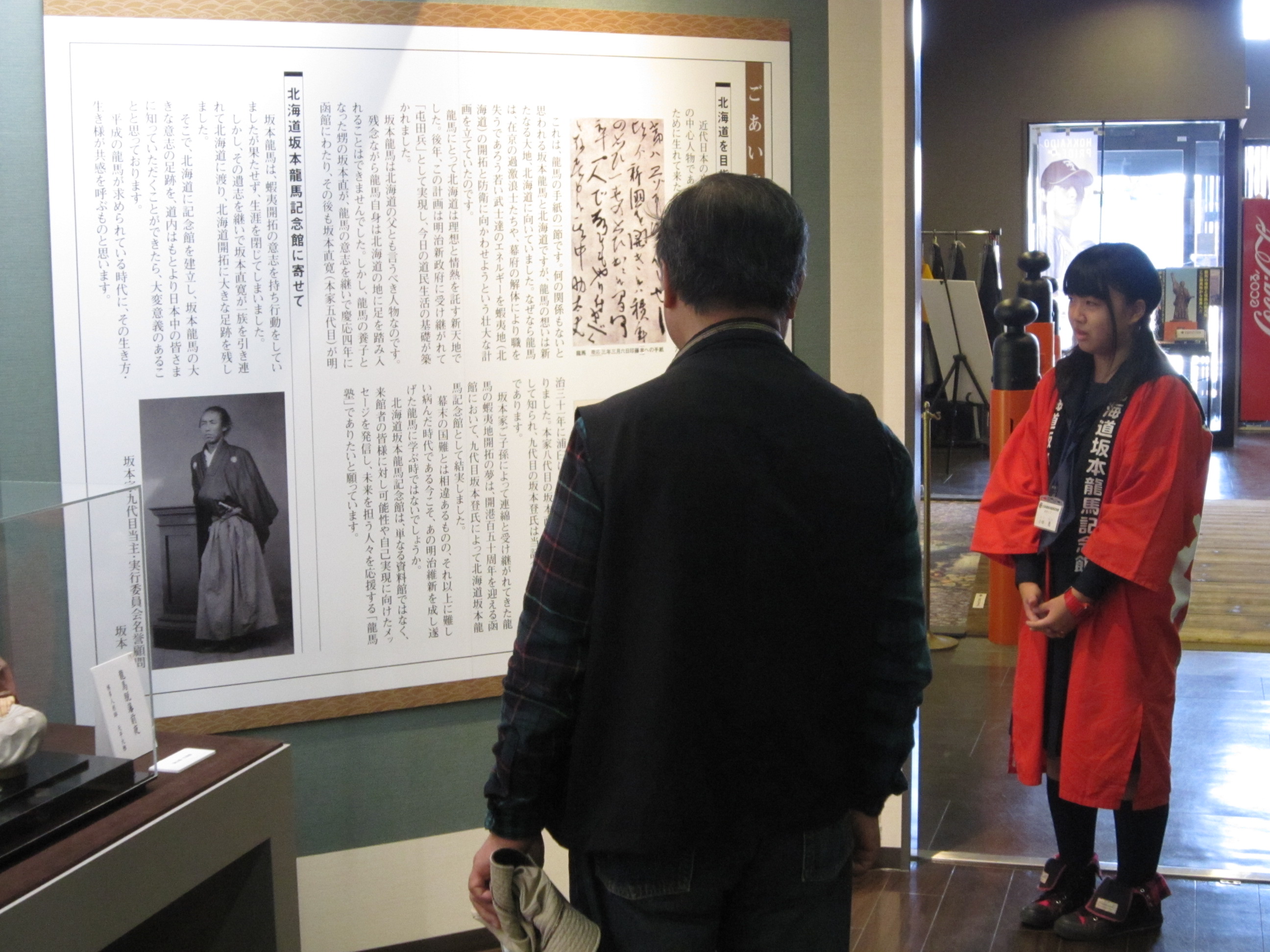 最後は、今日学んだ「坂本龍馬と北海道とのつながり」についての解説を実践してもらいました。二人とも緊張しながらも、しっかりとした解説を行ってくれてスタッフも感心しきり。この体験をぜひ今後に活かしていってもらえればと思います。