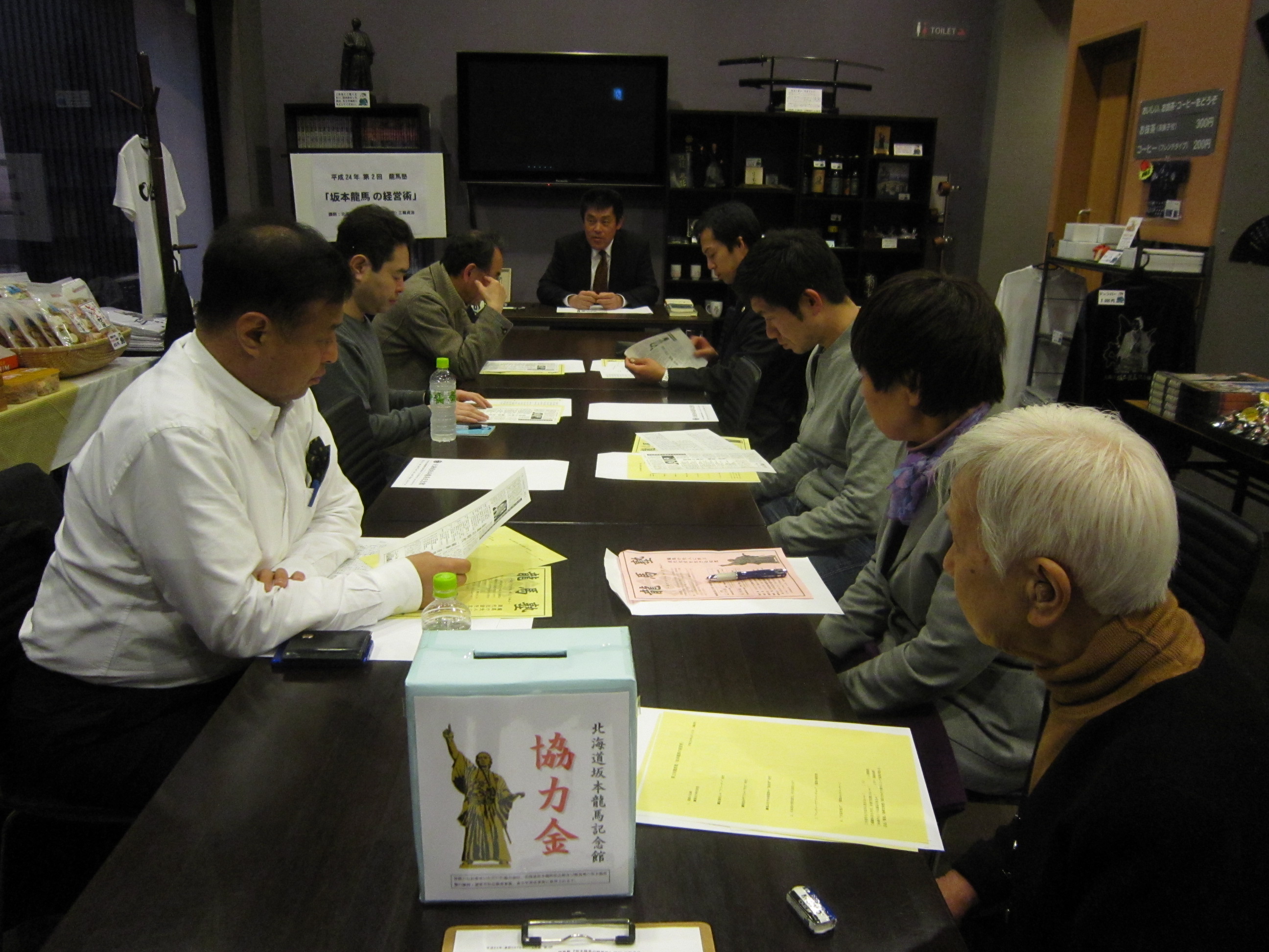 4月15日(日)午後6時30分~8時、北海道坂本龍馬記念館ホールにて、第2回龍馬塾「坂本龍馬の経営術」が開催されました。今回は経営者、会社員、主婦、正会員など7名の受講者と1名の取材記者の方々が参加、私・三輪貞治が講師を担当させていただき、龍馬の事業家としての足跡や商社設立の目的、龍馬の経営術などについて、様々なエピソードや対話を織り交ぜながら進めていきました。