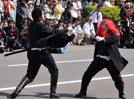 そして、素晴らしい天気に恵まれた20日は、ペリーの箱館来航から箱館戦争終結までを題材に、当時の旧幕府軍・新政府軍に扮して戦闘シーンを再現する維新行列や音楽パレード、そして旧幕府軍から明治新政府軍への五稜郭明け渡しを再現する開城セレモニーなどが、函館市中島町から五稜郭にかけて実施されました。