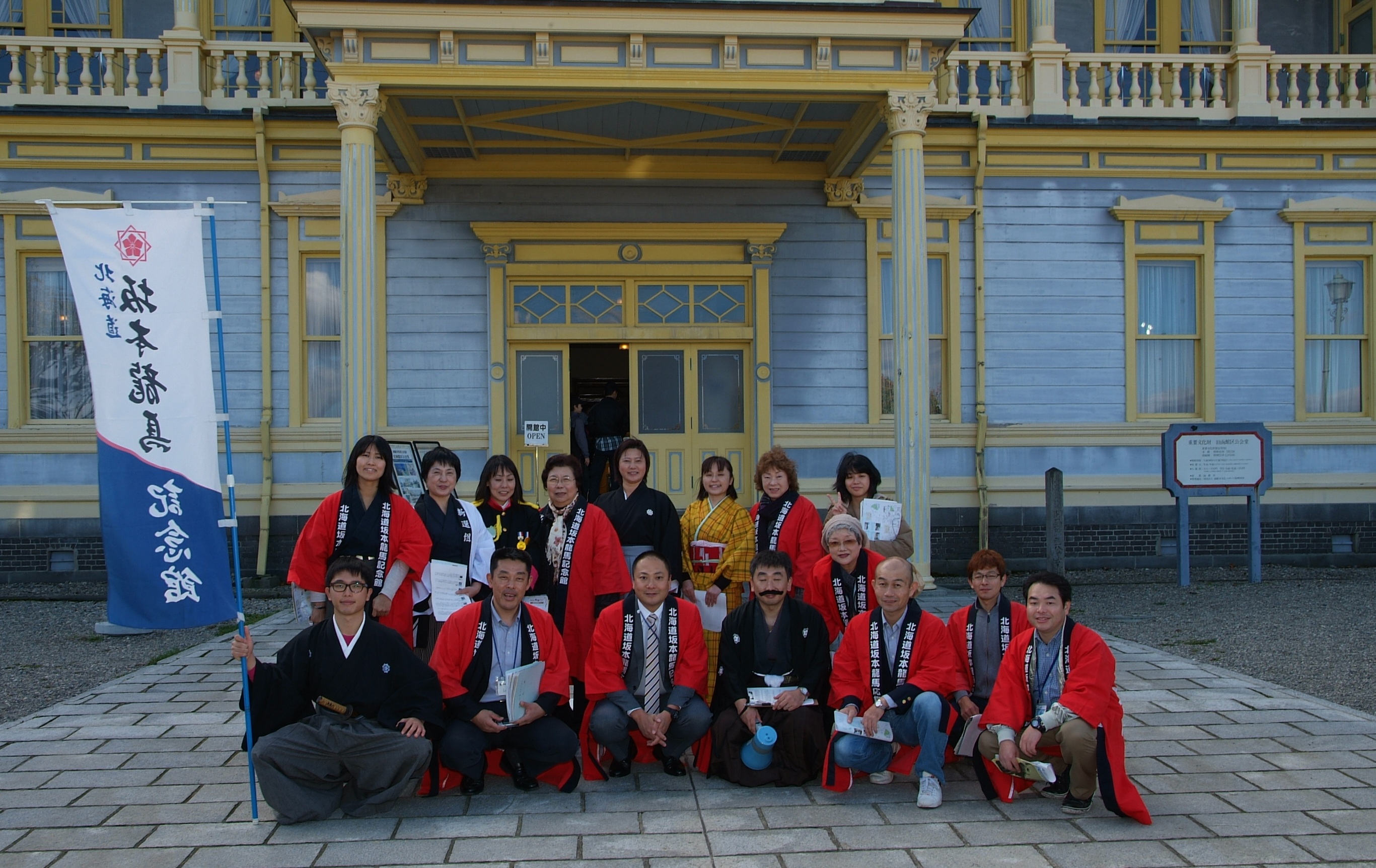 ◆函館史跡・名所めぐり 幕末の志士に扮装しての史跡・名所探訪ウォーク。最高のお天気に恵まれ、16名の参加者が幕末の志士になりきって楽しく函館の歴史を学びました。