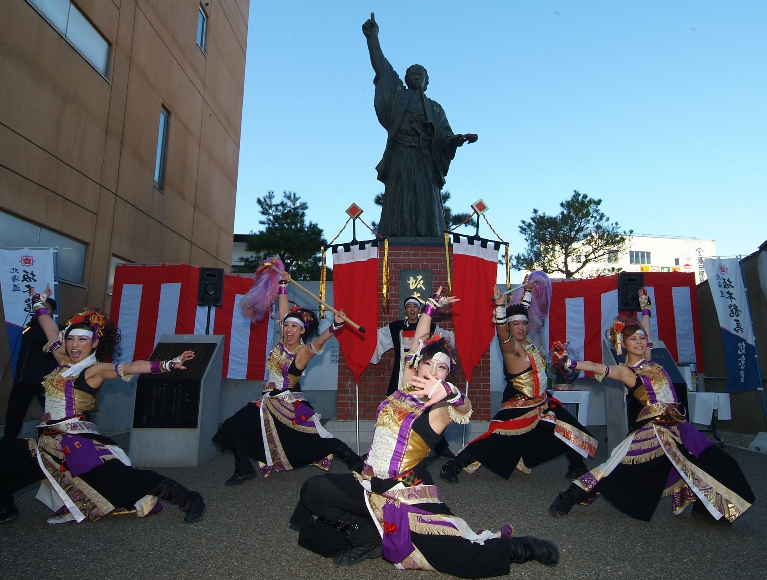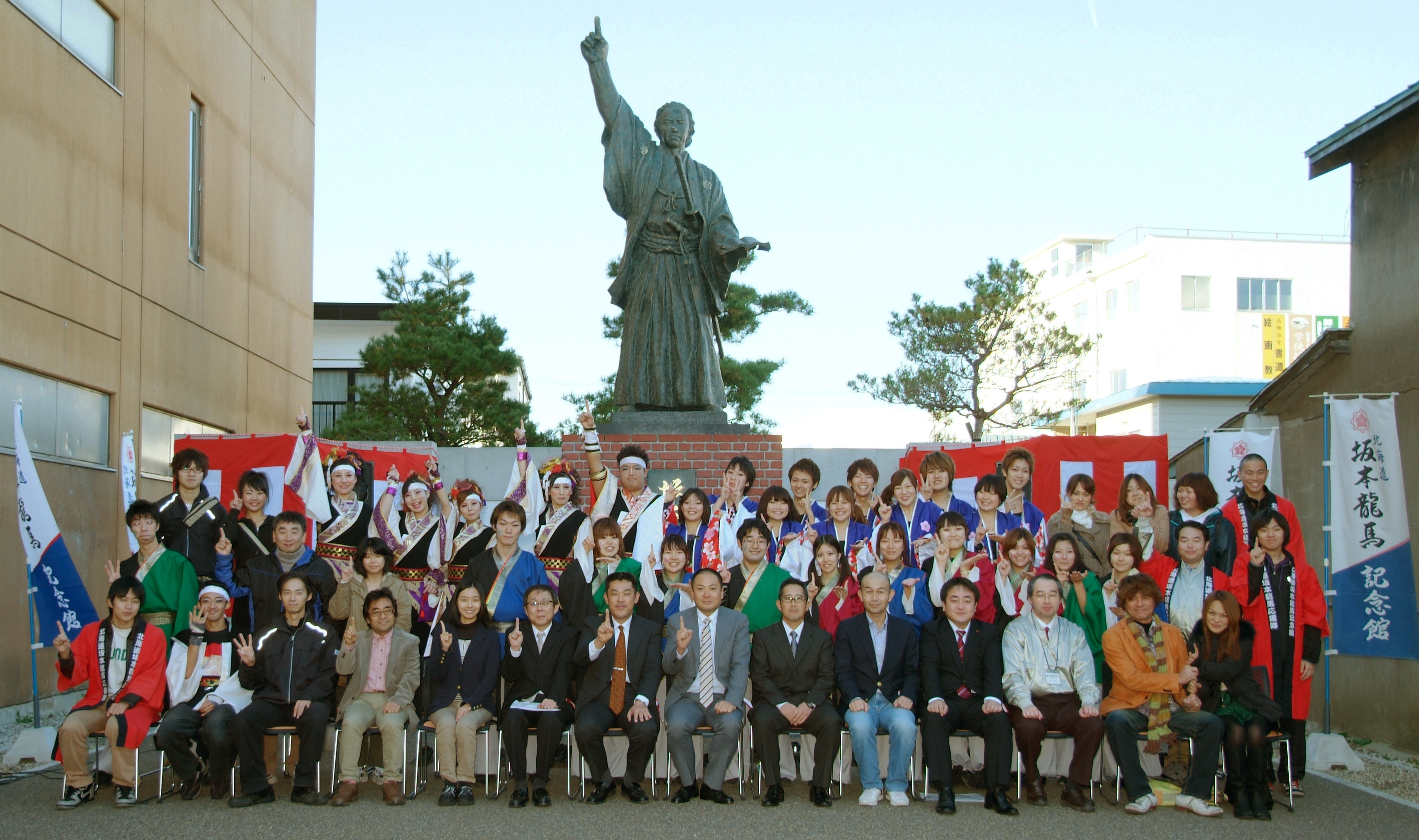 ◆坂本龍馬蝦夷地上陸祈念祭 龍馬の宿願であった蝦夷地上陸を祈念し、その高き志と功績を顕彰し受け継ぐこの式典には、約300人の方々が列席されました。今回は函館西高等学校吹奏楽局の皆さんによる開会ファンファーレと演奏、「函館学生連合~息吹~」と「函館躍魂いさり火」の皆さんによる躍動感溢れるYOSAKOIソーランの演舞奉納のほか、函館市議会議員・藤井辰吉氏、陸上自衛隊函館駐屯地・甲斐教一郎氏よりご祝辞をいただきました。そして最後に、主催者を代表して郷士坂本家10代当主・坂本匡弘より御礼の挨拶がありました。